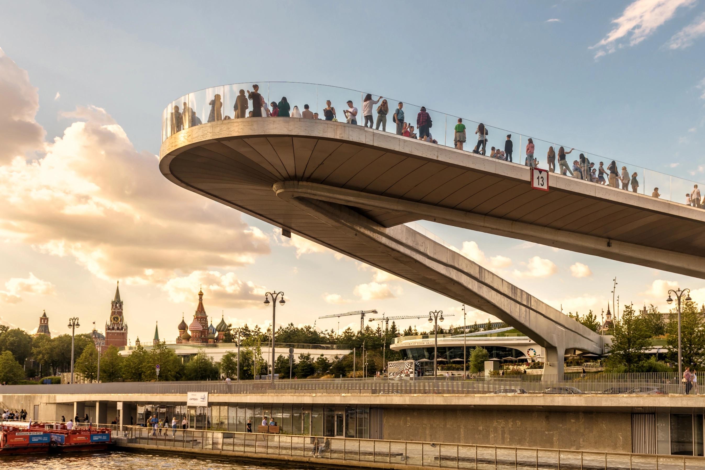Продолжим прогулкой по парку «Зарядье» — современному культурному пространству, которое стало одним из символов новой Москвы. Мы увидим главную достопримечательность парка — Парящий мост, откуда открываются особенно красивые виды на Кремль и Москву-реку.