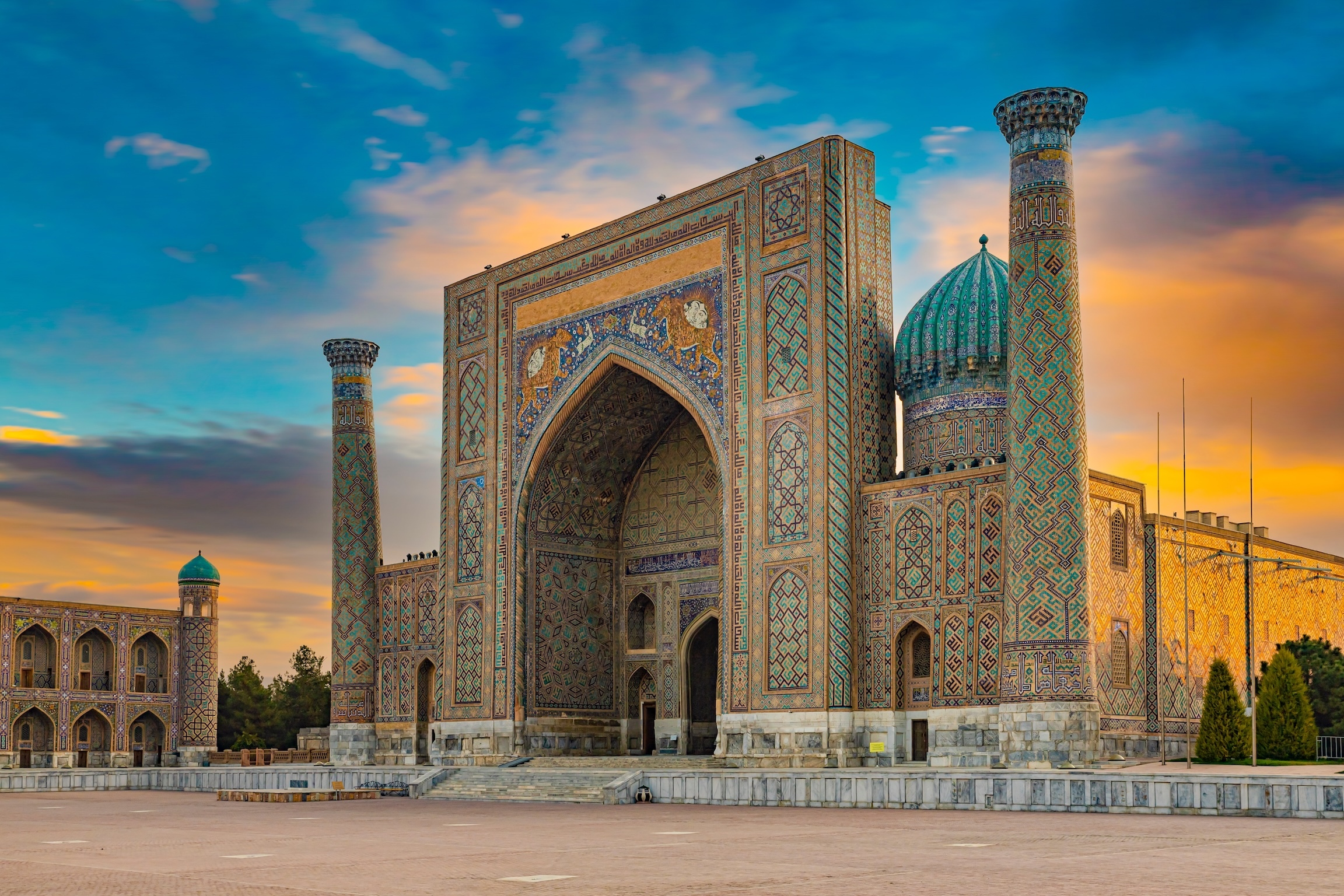 Далее мы посещаем площадь Регистан — сердце Самарканда и главный архитектурный ансамбль Центральной Азии. Медресе Улугбека, Шер-Дор и Тилля-Кари, построенные с разницей почти в два столетия, благодаря мастерству зодчих образуют единый гармоничный ансамбль, ставший символом города. После экскурсии — обед в традиционной чайхане (дополнительно).