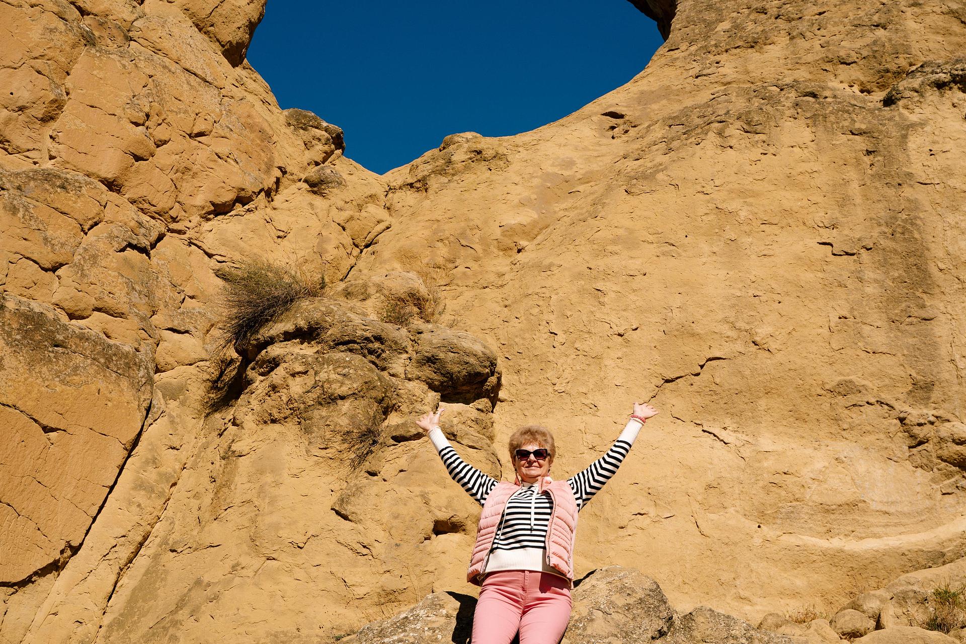 Дальше мы едем в горы. Остановка у горы Кольцо. Гора Кольцо когда-то была пещерой, но толщина скалы была невелика и со временем образовалось сквозное отверстие. Если подняться к Кольцу, то оттуда открывается великолепный вид на окрестности.