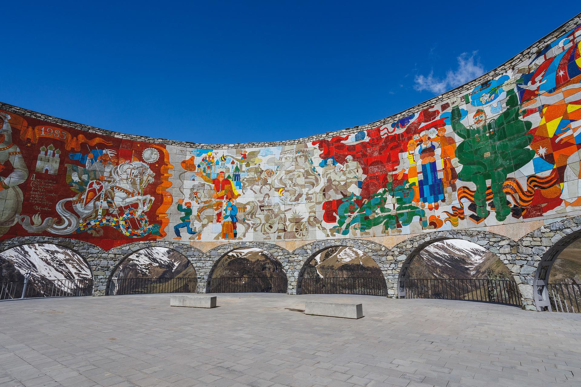 После прохождения границы мы отправимся по одной из самых красивых дорог Кавказа — Военно-Грузинской дороге, которая проходит через величественные горные ландшафты, ущелья и перевалы. По пути нас будут сопровождать захватывающие виды на Кавказские горы, а одной из главных панорам маршрута станет гора Казбек, у подножия которой находится знаменитая Троицкая церковь в Гергети. Мы увидим, как рождается река Терек, поднимемся на Крестовый перевал и сделаем остановку у знаменитой Арки Дружбы народов, откуда открывается впечатляющий вид на горные склоны и долины.