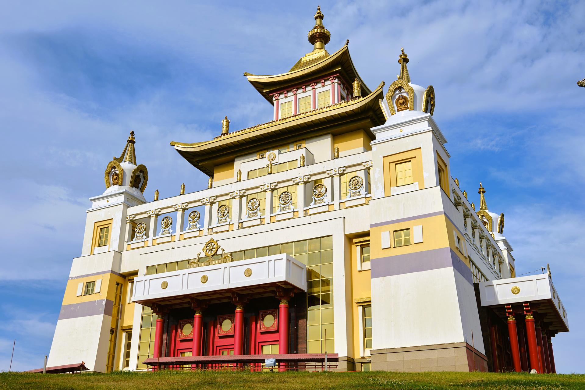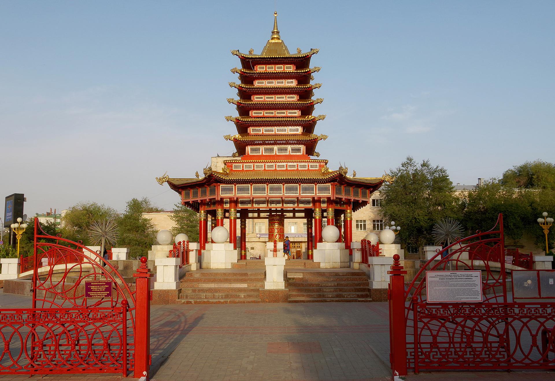 Во время пешеходной экскурсии «Буддийская столица России» мы увидим главные достопримечательности Элисты. Одной из первых станет Пагода Семи Дней — изящное семиярусное сооружение, рядом с которым установлен огромный молитвенный барабан кюрде, покрытый сусальным золотом и наполненный миллионами мантр.