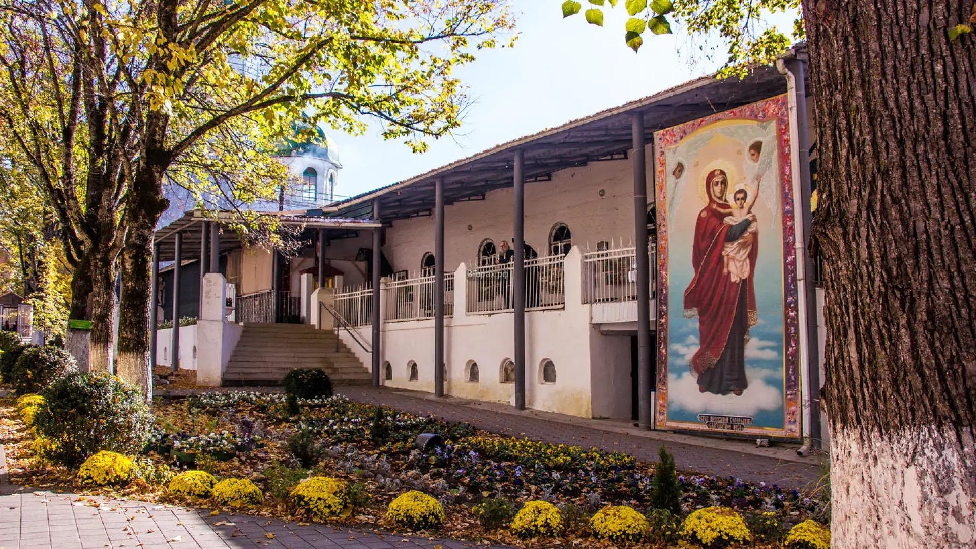 По прибытии в посёлок Победа мы посещаем Свято-Михайловский монастырь, расположенный на склоне горы Физиабго. Это один из самых известных монастырей Кавказа, основанный выходцами со Святой горы Афон и считающийся самым высокогорным монастырём России.