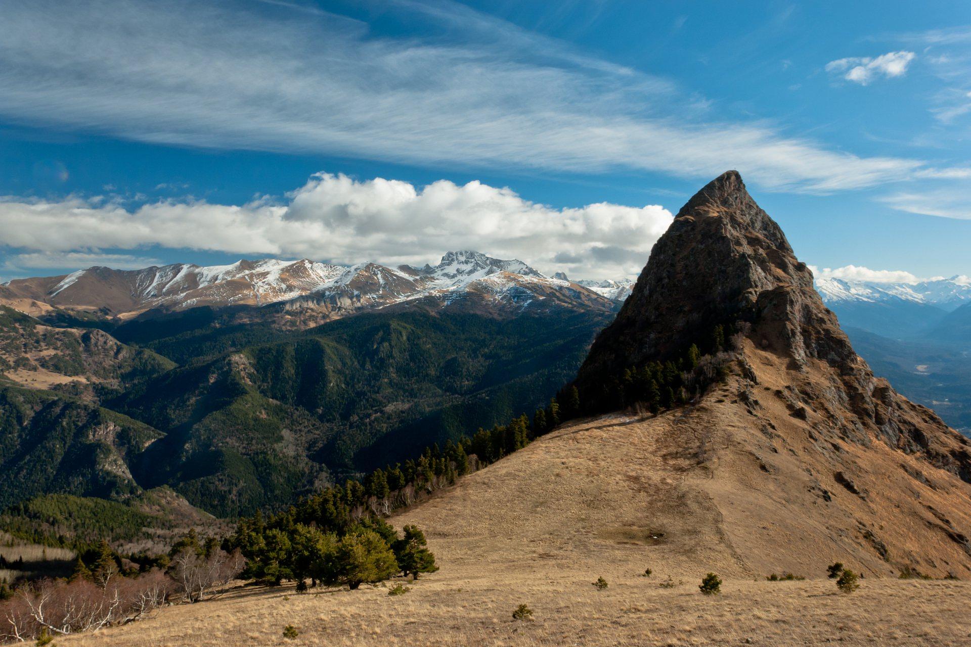 По мере подъёма открываются виды: с одной стороны — массив Магишо, с другой — дикие отроги Джентау.