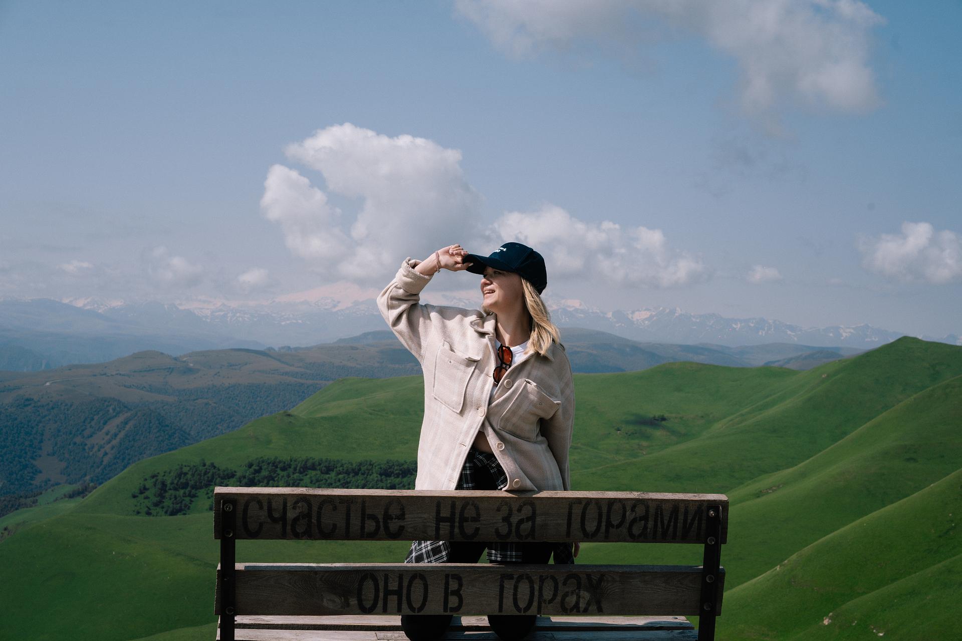Одной из первых остановок станет плато Шатджатмаз — место, откуда открывается панорамный вид на Эльбрус. Здесь находится та самая «инстаграмная лавочка», где хочется задержаться подольше, чтобы просто смотреть на величественные вершины и наслаждаться моментом.